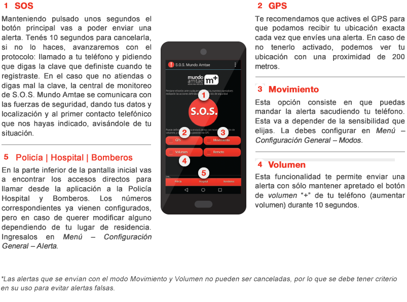 Asistencia S.O.S. Mundo Amtae es un sistema de seguridad móvil que te protege ante cualquier situación de riesgo, respondiendo de forma inmediata. La respuesta de nuestro servicio está basada en protocolos desarrollados por especialistas en seguridad, garantizando respuesta inmediata ante cualquier situación de peligro, robo, acoso callejero o emergencia. Ante una alerta, garantizamos el aviso inmediato a las fuerzas de seguridad y a tus contactos seleccionados para informarles de tu situación.